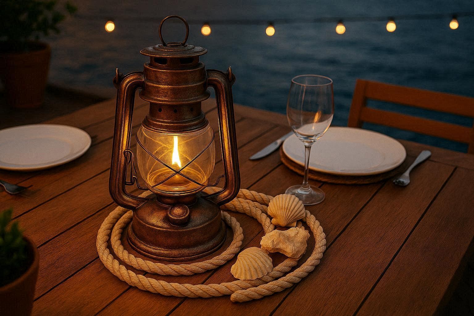 Antique Style Brass Kerosene Lantern For Outdoor Patio Dining And Nautical Theme Table Decoration