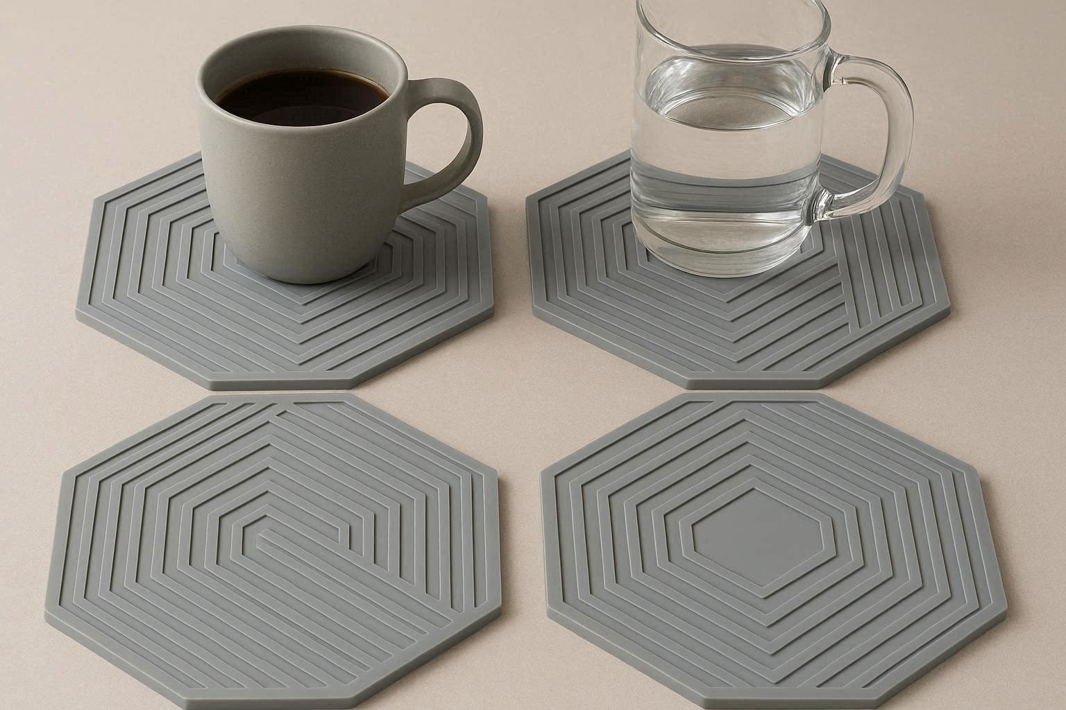 Extra Large Hexagon Silicone Coasters For Oversized Mugs And Pitchers With Modern Geometric Design