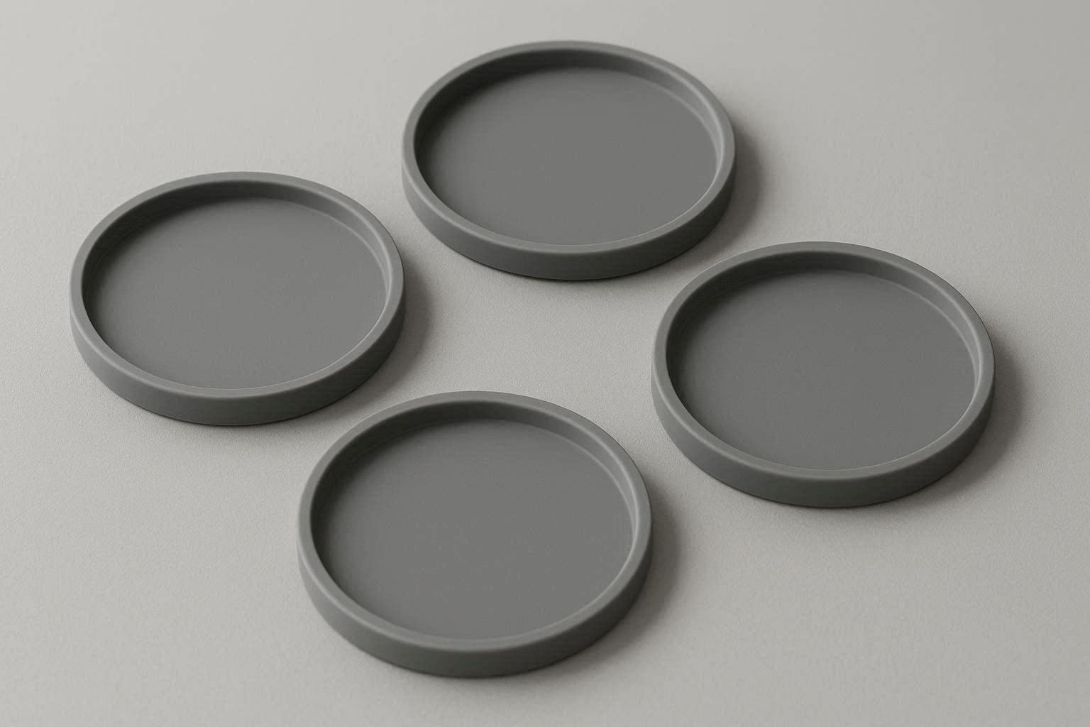 Minimalist Grey Silicone Coasters With Raised Edge For Minimalist Home Decor And Drip Proof Performance